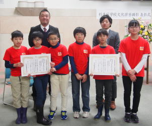 大雪の中、1月22日(月)に杉並区役所で表彰式が開催され、表彰式には5、6年の担任の先生方も出席してくださいました。