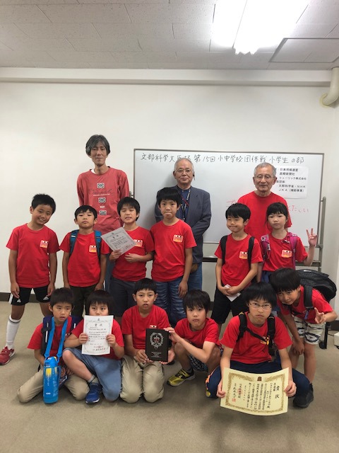 文部科学大臣杯 第15回小・中学校将棋団体戦 東京都大会 令和元年6月9日 6月9日(日)、文部科学大臣杯第15回小・中学校将棋団体戦東京都大会が、中央区日本橋の綿商会館で開催されました。 高四小囲碁将棋部からは、高四1チームから高四4チームまでの4チームが出場しました。 今回は、経験豊富な上級生がみな卒業し、新体制で臨んだ大会でした。その中でも、高四1チームはリーグ戦を全勝の1位タイで通過し、優勝決定戦決勝まで進み、東日本大会まであと一歩のところまでせまる大健闘の戦いぶりでした。他のチームも、勝ち負けに関わらず、自分の力を出し切った対局を重ねてくれました。