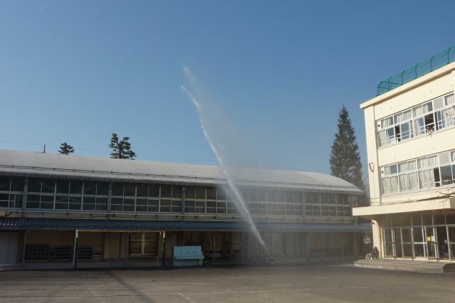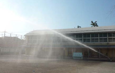 砂嵐を解消! 校庭にスプリンクラーが設置されています。