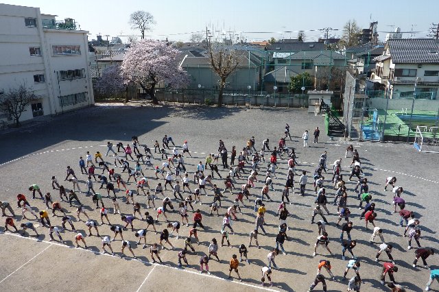 整列の仕方や向きの変え方などの集団行動を全校で学びました。