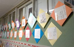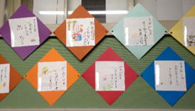 ◆こころのことば (校内俳句・川柳展) 感じたことを言葉で表現する力を高めたり、身近な季節の変化に関心をもったり、 言葉の意味の理解を深めたり、俳句という日本の伝統文化に慣れ親しんだりすることをねらいに、 年間3回、国語科の季節の言葉や言語についての学習や、生活科の季節の学習の際に、 俳句や川柳にして感じたことを言葉で表現したりする活動を取り入れています。