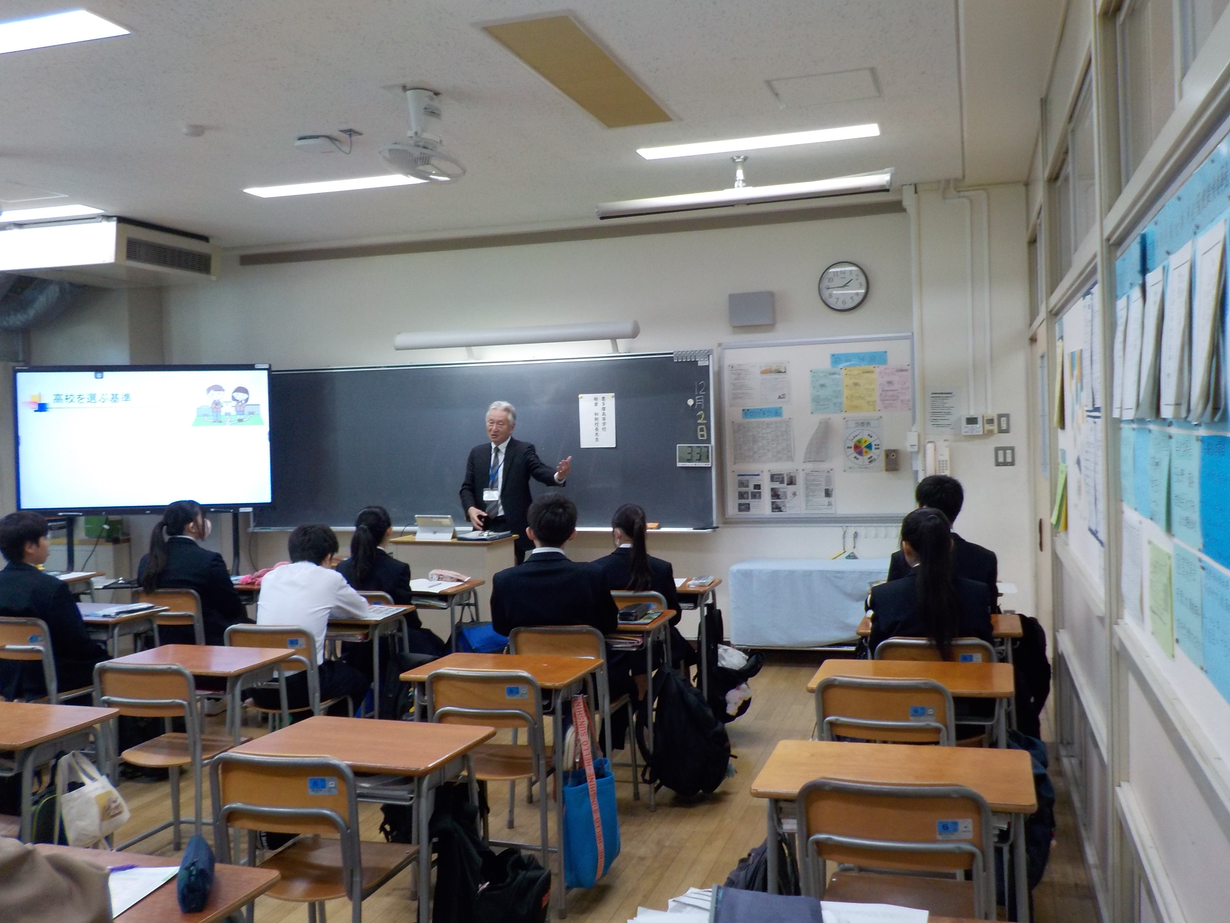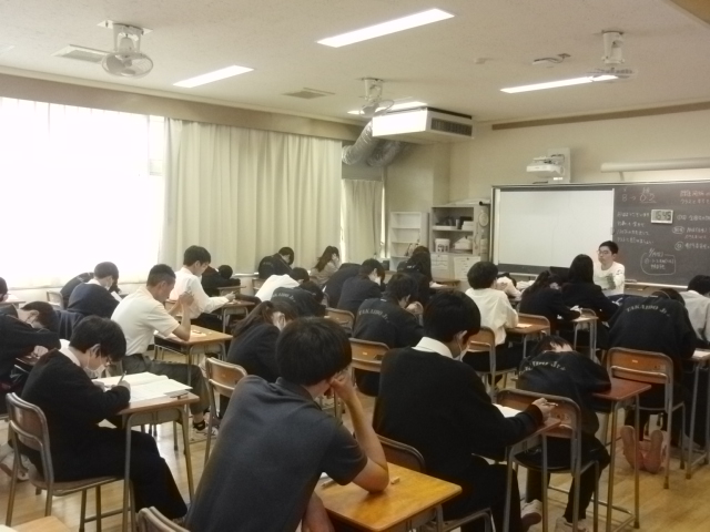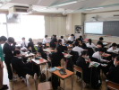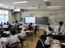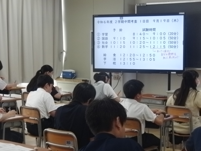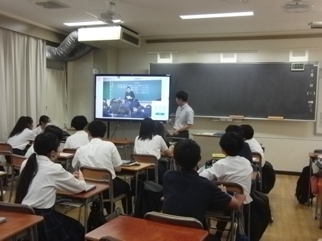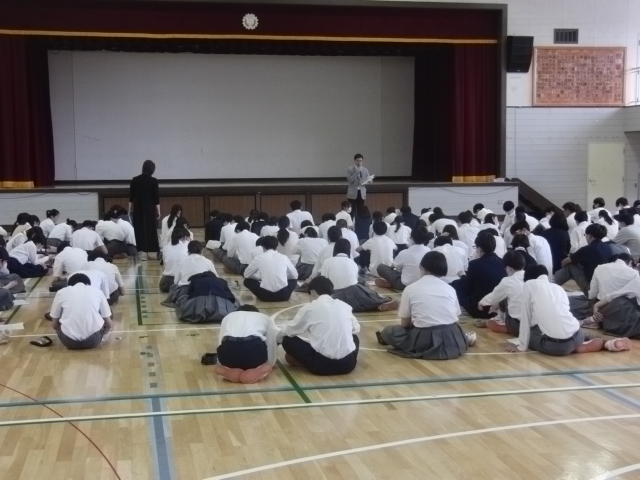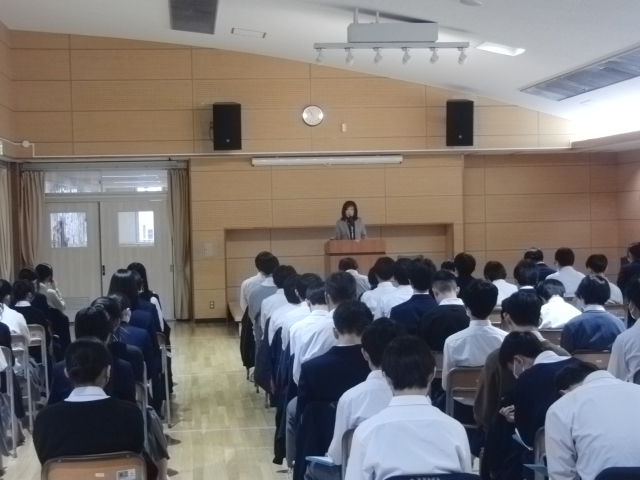 今日は2年生は卒業生からの講話を行いました。高校受験や大学受験のこと、高校生活のこと、スマートフォンとの付き合い方など体験談を交えて聞きました。かなり参考になったと思います。