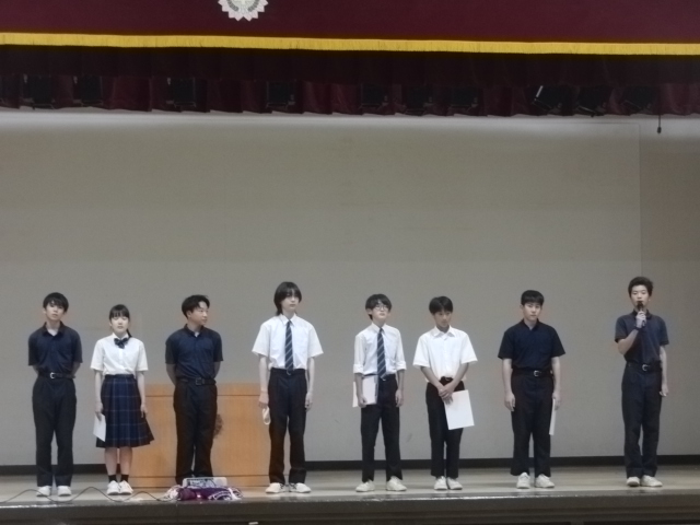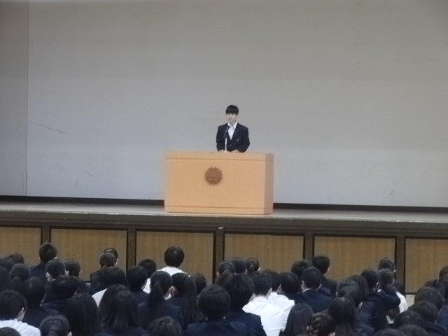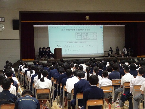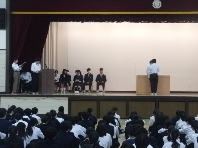今日は5時間目に生徒総会がありました。生徒会、各委員長から前期の方針などを説明し、承認を得ました。校長からは活動方針の具体的な内容が当たり前のこともあるので見直すことで、もっと生徒主体の活動になると伝えました。生徒全員参加の生徒会活動にすることが「夢HUG」になります。皆さんの力で改革しましょう。