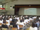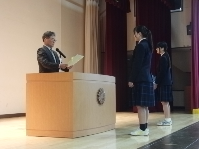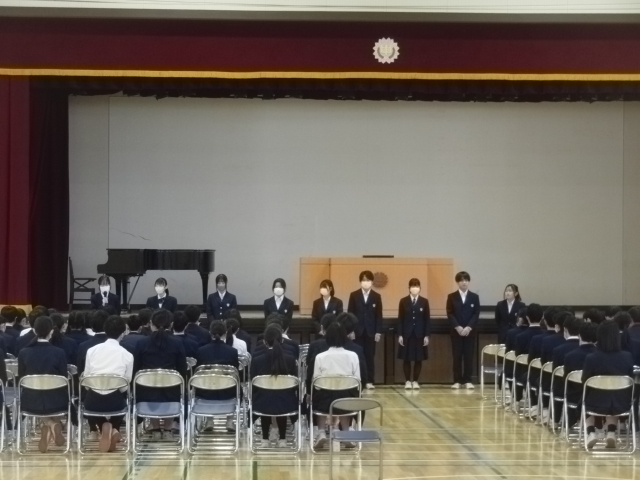 本日より3学年そろった高井戸中の新たな学校生活がスタートしました。今年度初めて全校生徒がそろう場として、生徒会本部役員の進行による対面式を行いました。在校生からは校歌の紹介とプレゼントがあり、新入生からは代表による挨拶を行いました。在校生が先輩としてリードしてくれることと新入生が早く学校に慣れてくれることを期待しています。