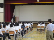3年生は今週の土曜日から二泊三日で京都・奈良方面に修学旅行に行きます。5時間目に体育館で事前指導があり、集合時の並び方や写真撮影の並び方、持ち物や服装について、前日の大きな荷物の持参する時間などの指導がありました。中学校生活最後の宿泊行事を成功させてほしいと思います。