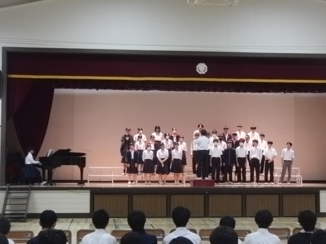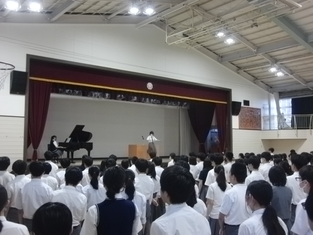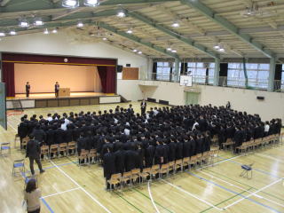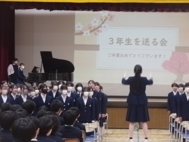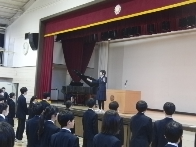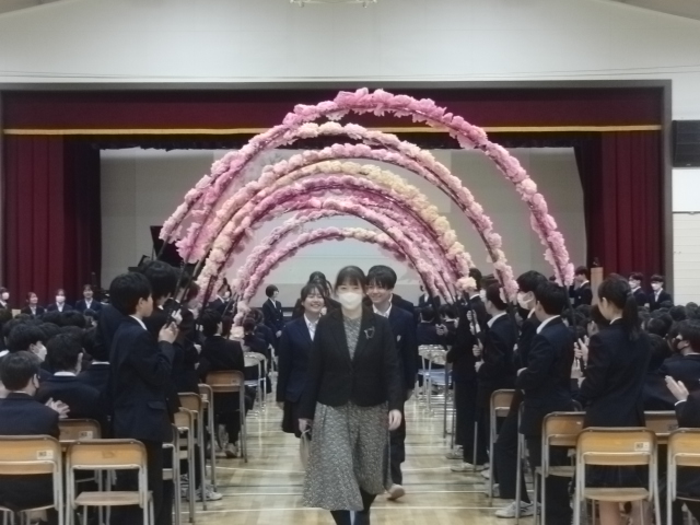| 本日、第76回卒業式を行いました。164名の生徒が高中を巣立っていきました。校長からは卒業生に対して「駑馬十駕」というメッセージを送りました。在校生からは「卒業生を送る言葉」と在校生からの歌『春風の中で』を合唱しました。卒業生からは「門出の言葉」と卒業生の歌『正解』と『旅立ちの日に』の2曲を合唱しました。『正解』は卒業生のアンケートから選んだ歌です。卒業式でも生徒主体で合唱曲を決め、最後まで素晴らしい合唱を披露してくれました。これからは高中卒業生として学校を支えてほしいと思います。卒業おめでとうございます。 |