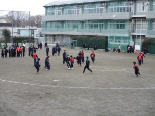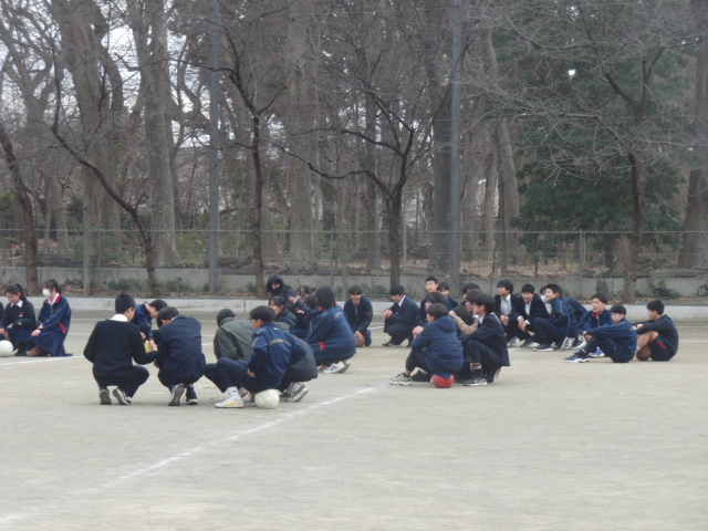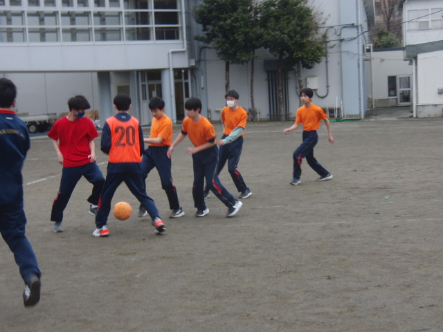 今年一番の寒さといわれる日々が続いていますが、高井戸中の生徒たちは元気に学校生活を送っています。写真は2年B組の保健体育の授業の様子です。サッカーのゲームを行いました。チーム内で作戦を立て、お互いに声を掛け合いながら、ゴールを目指しました。授業後は体を冷やさないよう汗をきちんと拭き、手洗いやうがいなどを行い、体調管理をしっかりしましょう。