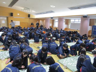 6校時に1・2年生が卒業式練習を行いました。服装や作法の確認をした後、代表生徒の動きの確認も行いました。最初のうちは、動きの遅れ、姿勢のくずれ、私語など、心配な場面も見られましたが、練習を重ねるうちに良くなってきました。これから歌の練習も始まります。2年生中心にしっかりと練習してください。
