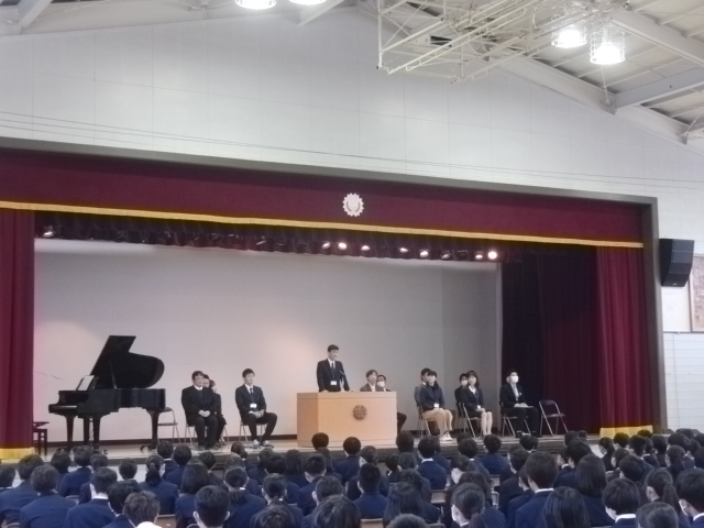 本日は、本校卒業生である鈴木福さんにお越しいただき、3年生に対してご講演していただきました。ご自身の中学・高校・大学生活での経験、そしてお仕事での経験から得たことや学んだことを、この春卒業を迎える3年生に向かってアドバイスも踏まえながらお話していただきました。講演の後半には、生徒からの質問タイムということで、実際に3年生から質問を受け、お答えいただく場面もありました。