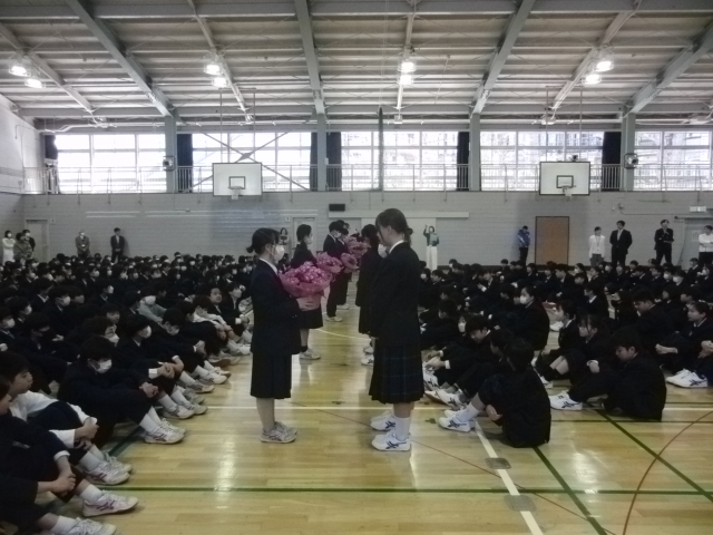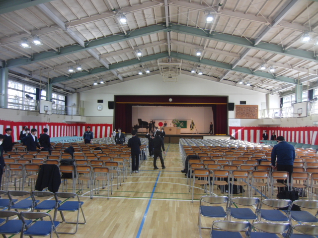 今日は午後から1・2年生が明日の卒業式の準備を行いました。生徒会や委員会の係生徒が丁寧に会場づくりを行ってくれました。明日は素晴らしい卒業式になると思います。