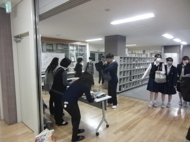 1年生が高中のことをよく知るために校内巡りを行いました。写真は、部活動などでよく使用するスペースでの様子です。授業、学校行事、委員会活動、部活動など、様々なところがこれからの活動場所になります。分からなくなったら今日もらった説明プリントを見たり、友達や先生に聞いたりして、様々な活動で力を発揮してくれることを期待しています。