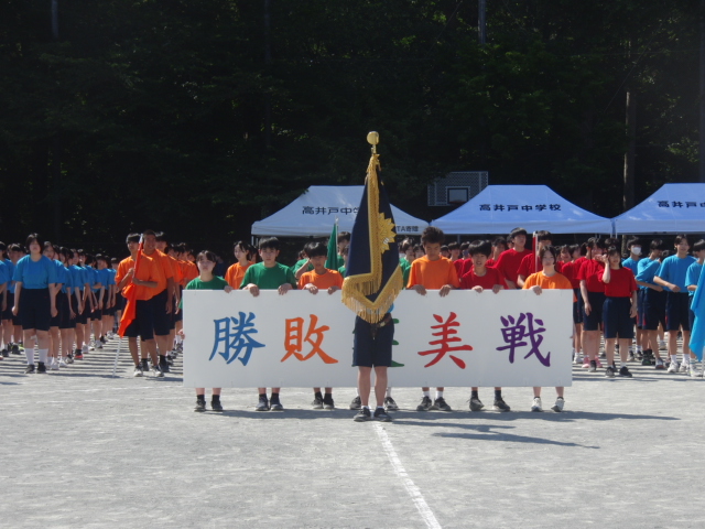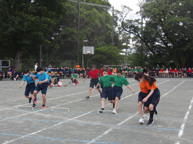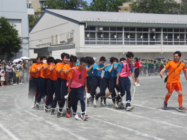 6月8日(土)の体育大会に向けて、学年練習が始まりました。今日は1・2校時に1年生が学年練習を行いました。クラスごとにきちんと整列して実行委員や先生からの説明を聞いた後、準備体操、練習を行いました。写真は全員リレーの様子、白熱した応援の中、どのクラスも全力で走り抜きました。これからの2週間の準備期間と体育大会当日を経て、大きく成長してくれることを期待します。