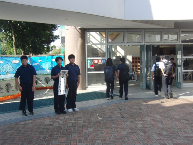 今日は検定(漢検・数検・英検)申込が学校支援本部の協力で登校時にありました。忘れた生徒は必ず明日持参してください。また、昼休みには生徒手帳の個人写真の撮影がありました。トラックの中で撮影を行いました。