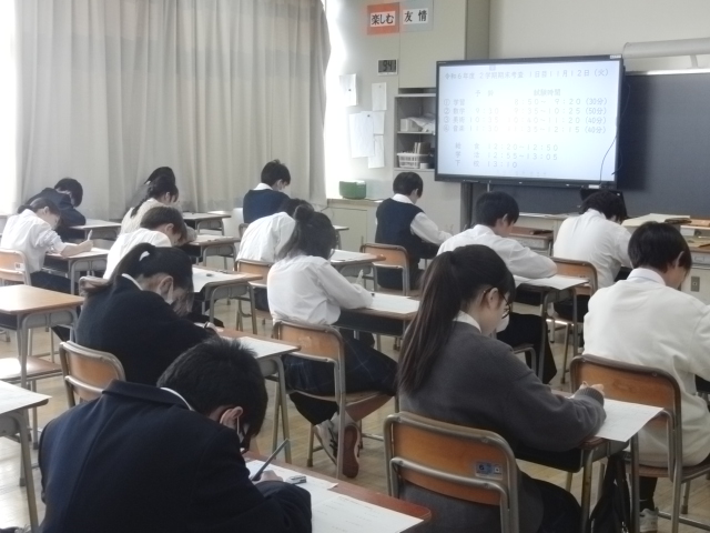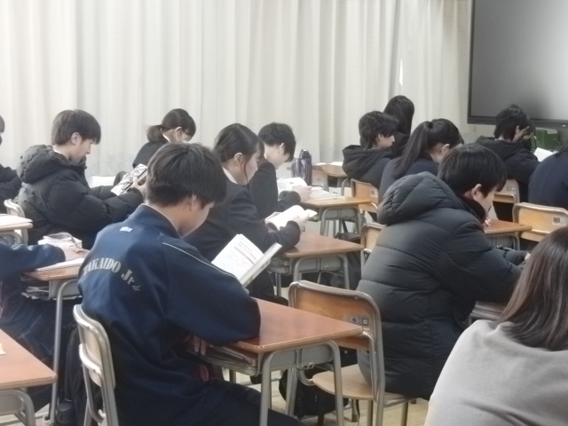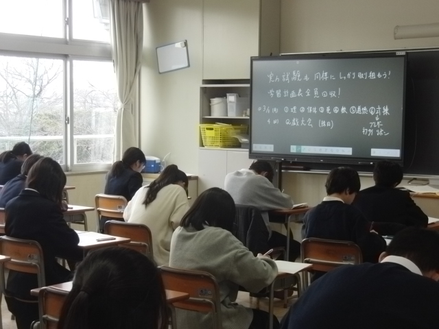 今日で学年末考査が終了になります。3日間お疲れさまでした。明日、1年生は実力テストです。もうひと頑張りです。