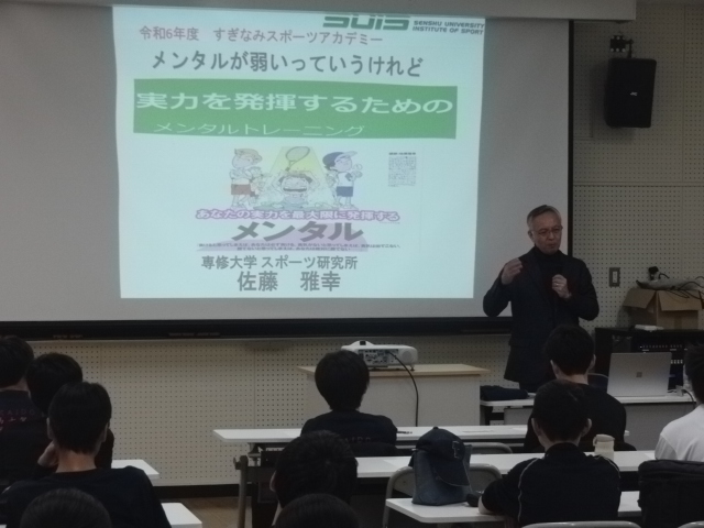先週の土曜日の午後に杉並区スポーツ振興財団の主催で「メンタルが弱いっていうけれど」というテーマで専修大学のスポーツ心理学教授の佐藤雅幸様に講演をいていただきました。