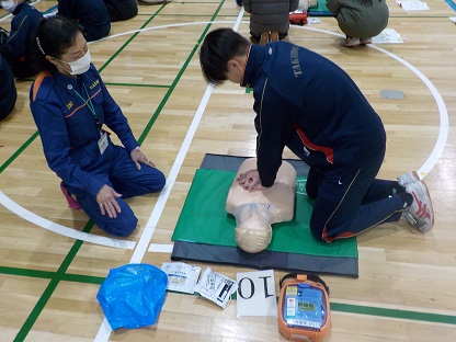 人形を用いて、実際に胸骨圧迫等の練習も行いました。