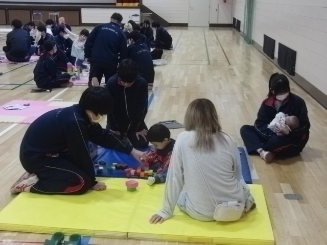 初めに保健士の方から妊娠中のことについてお話をいただき、妊婦ジャケットで妊婦体験を行いました。その後、お子様と関わらせていただきながら、保護者の方から出産から子育てのお話を聞きしました。