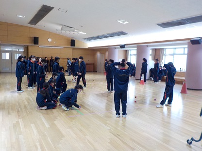 2年生は午前中に球技大会を行いました。あいにくの天気で、予定していたグランド競技のサッカーは中止となり、体育館でのドッジボールと多目的ホールにてボッチャを行いました。どちらの競技も盛り上がり、男子はC組が優勝、女子はA組が優勝、総合優勝はC組でした。また、球技大会実行委員の生徒も朝早くから準備をしてくれ、急な競技変更にも柔軟に対応できました。来年度は念願のグランド競技が実施できるといいですね。