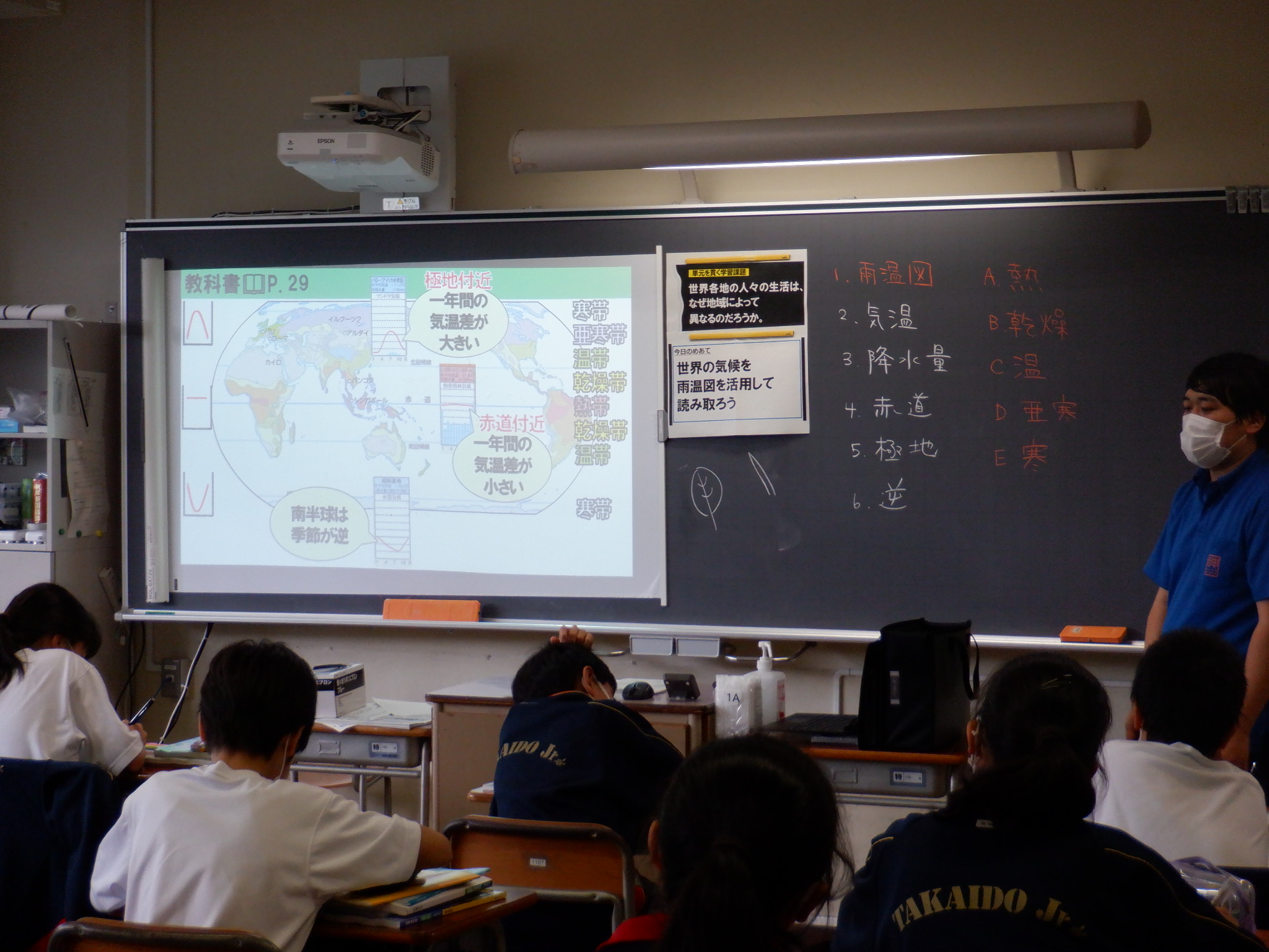 1年生の社会は地理を学習しています。雨温図の書き方の学習をしていました。