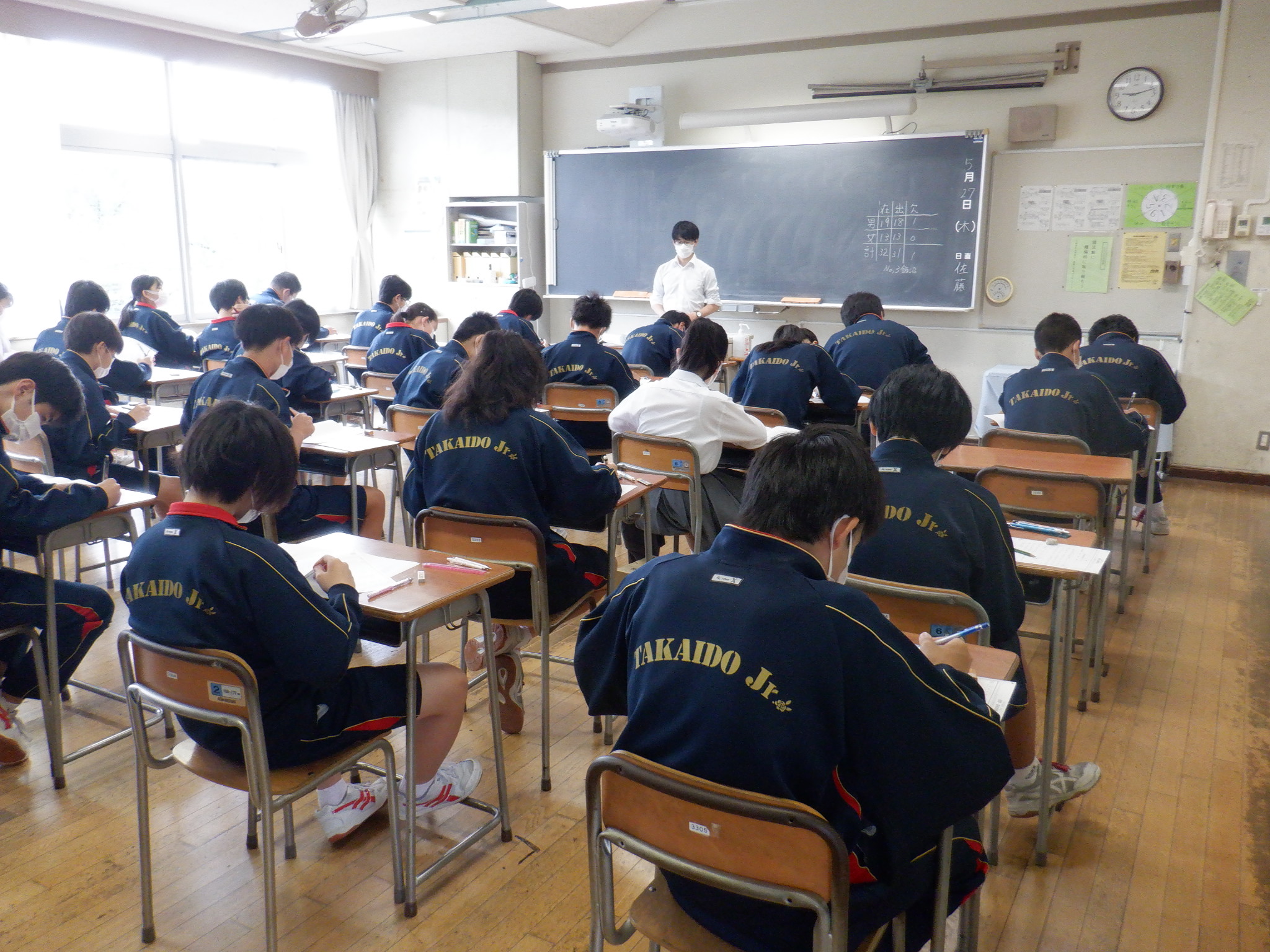 今日は区特定課題調査を行いました。5教科のテストを頑張って受けていました。