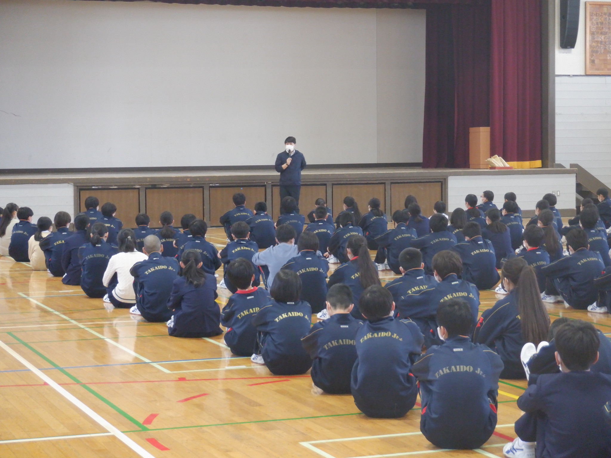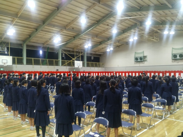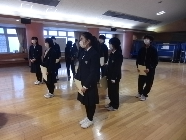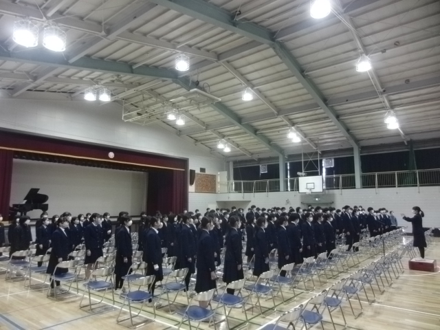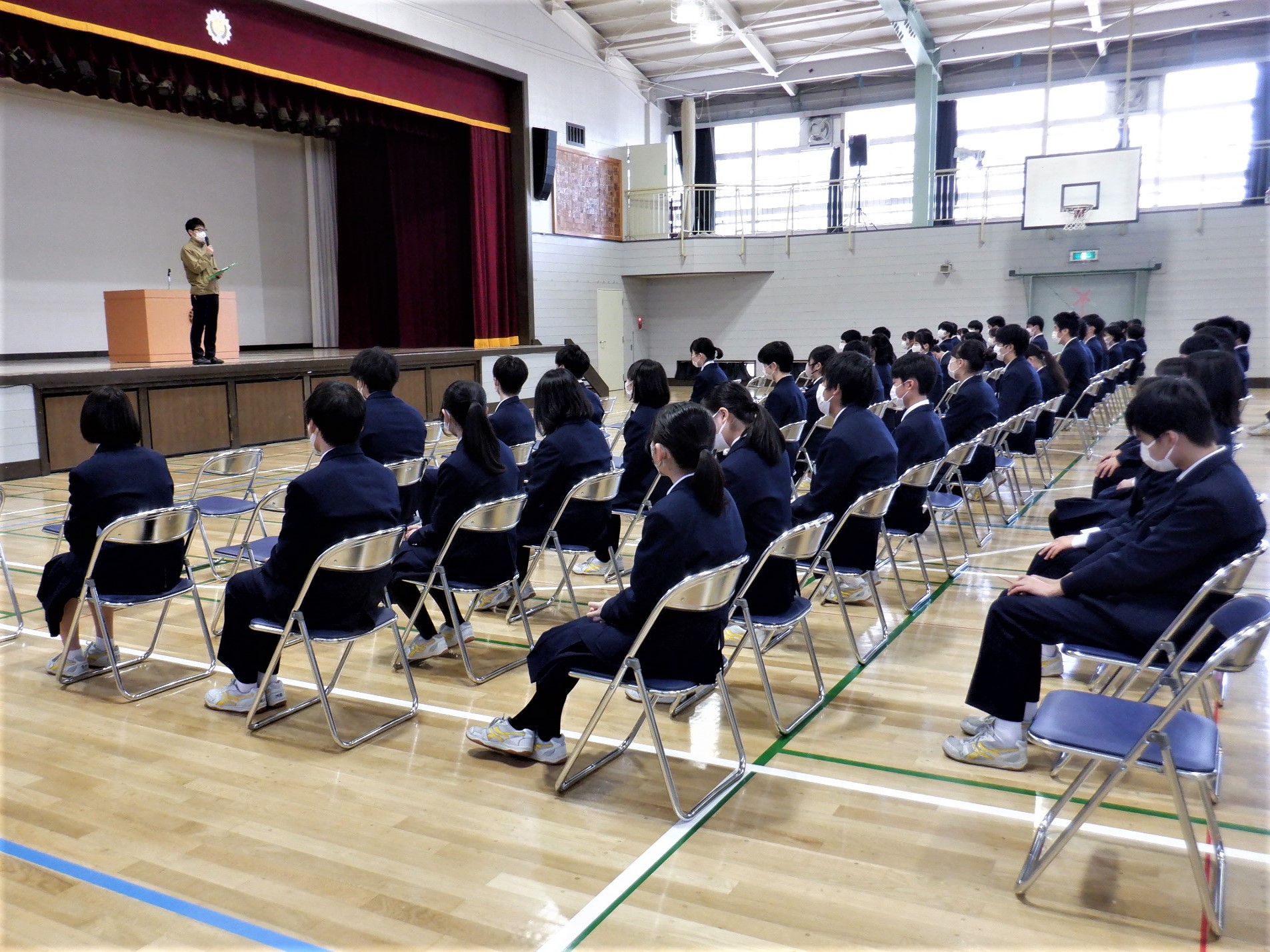 また、今年から教職員異動の発表が早まり、離任式を行いました。退職の先生や異動の先生から最後のお話がありました。先生からの最後のお話を真剣に聞き、終わった後も職員室にたくさんの生徒たちが来て、名残惜しいそうに話をしていました。離任される先生方も新しい学校でがんばってください。