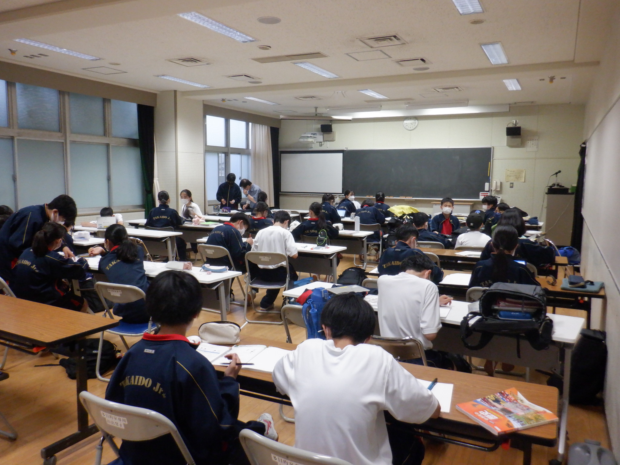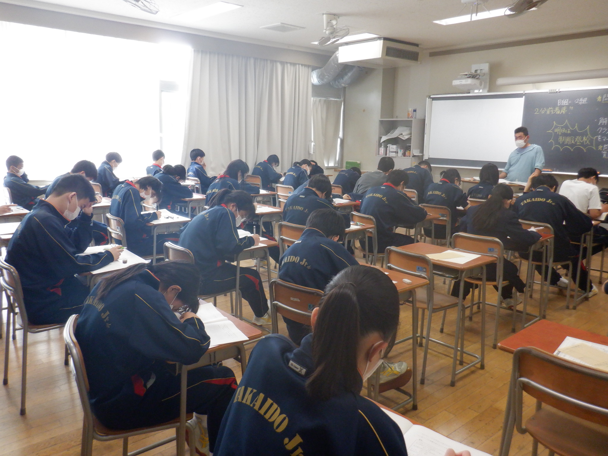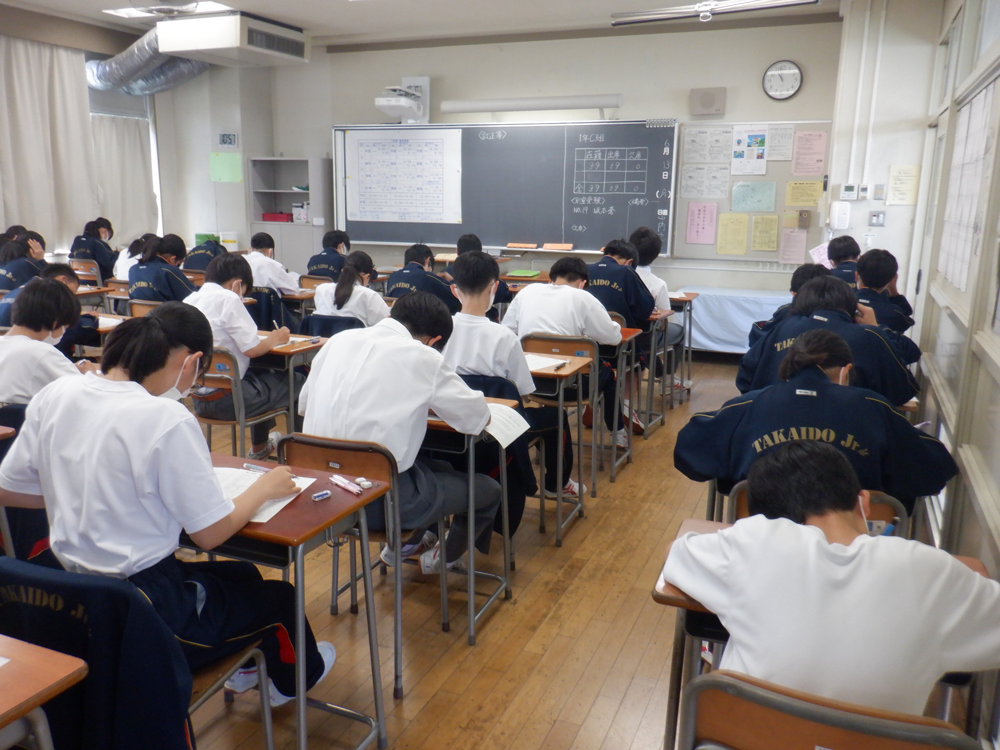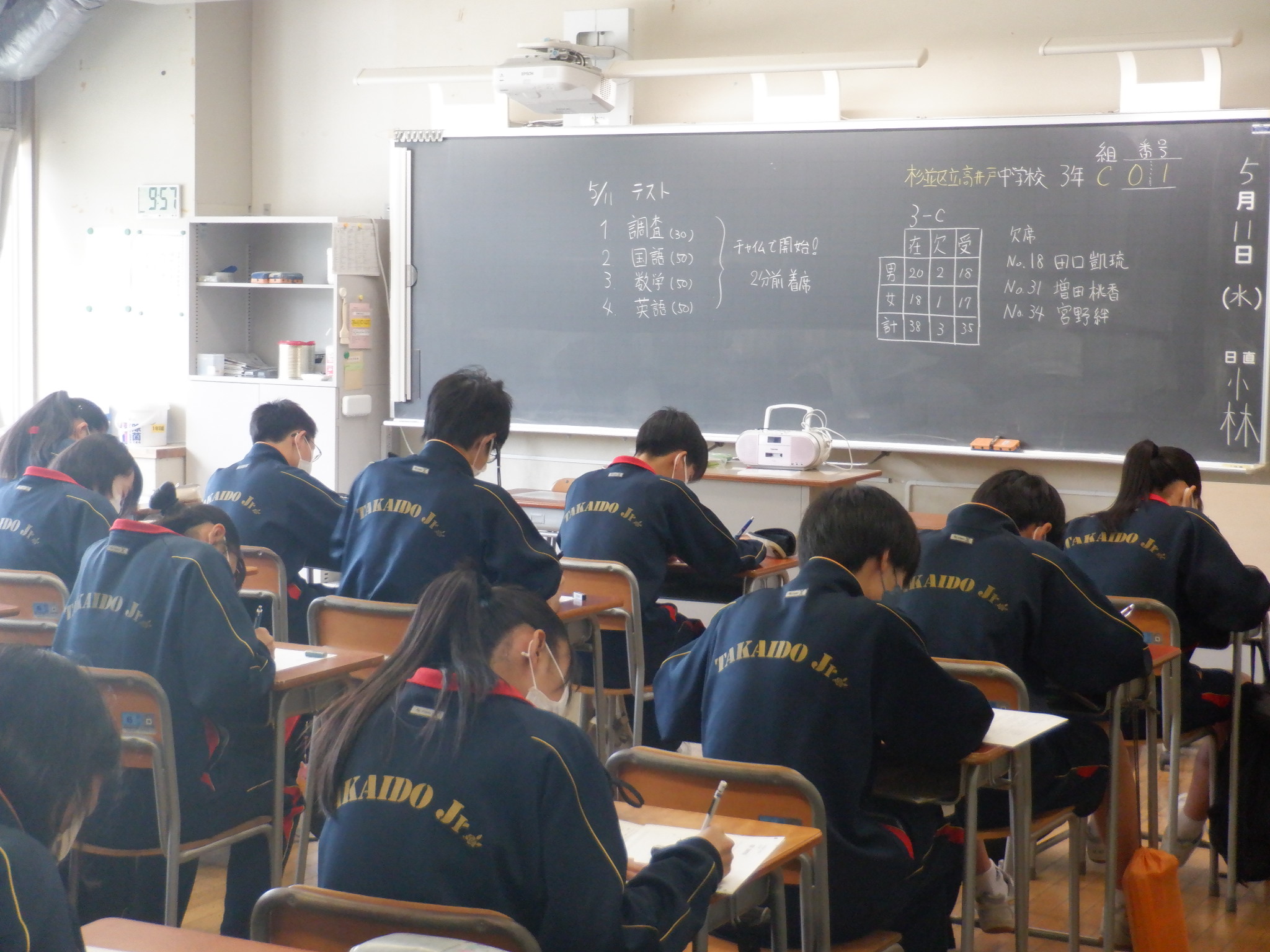 3年生は杉並区学力調査がありました。国語・数学・英語と学習・生活のアンケートを行いました。自分の実力を把握する調査です。頑張って取り組んでいました。