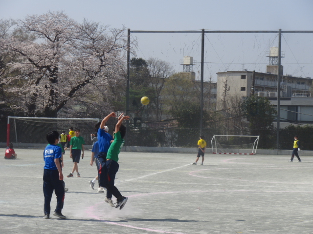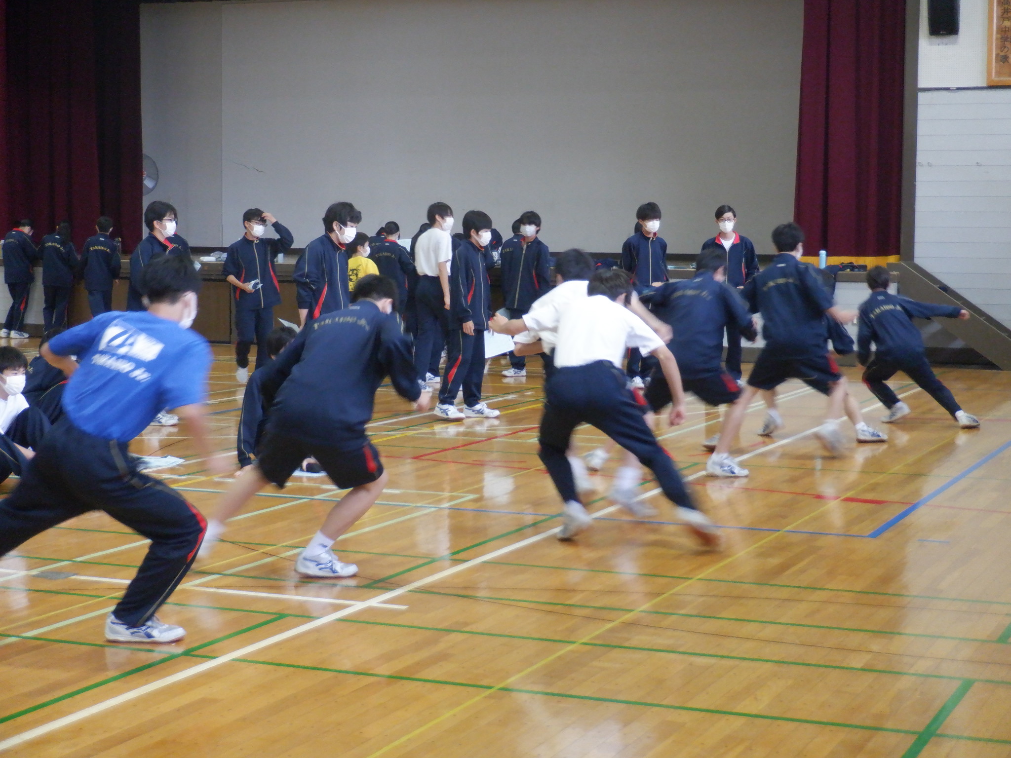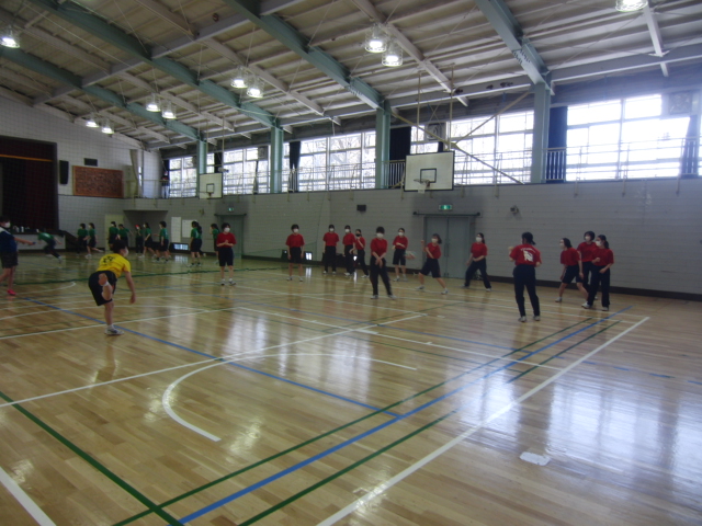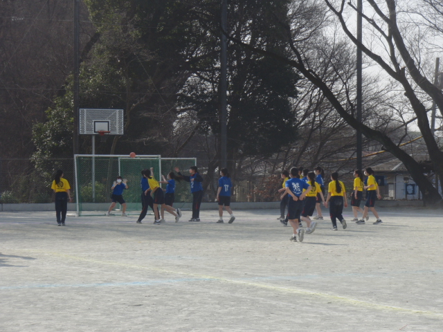1年生は午前中に球技大会を校庭と体育館で実施しました。女子は体育館でバレーボール、校庭でハンドボールを行い、男子は校庭でサッカー、体育館でバスケットボールを行いました。白熱した球技大会でした。