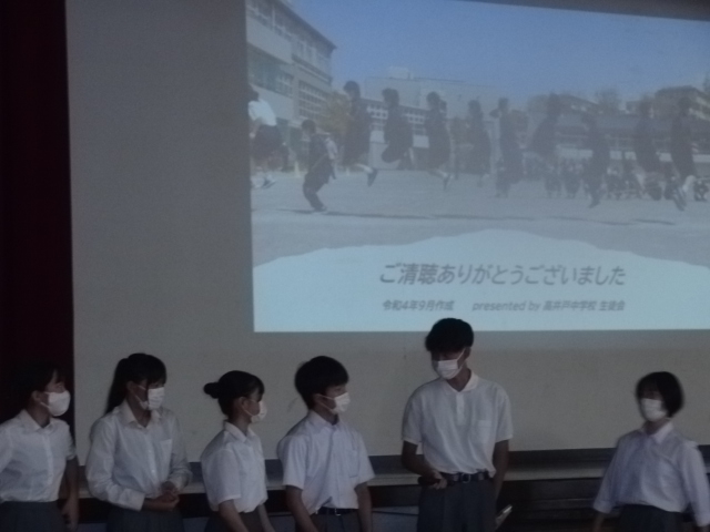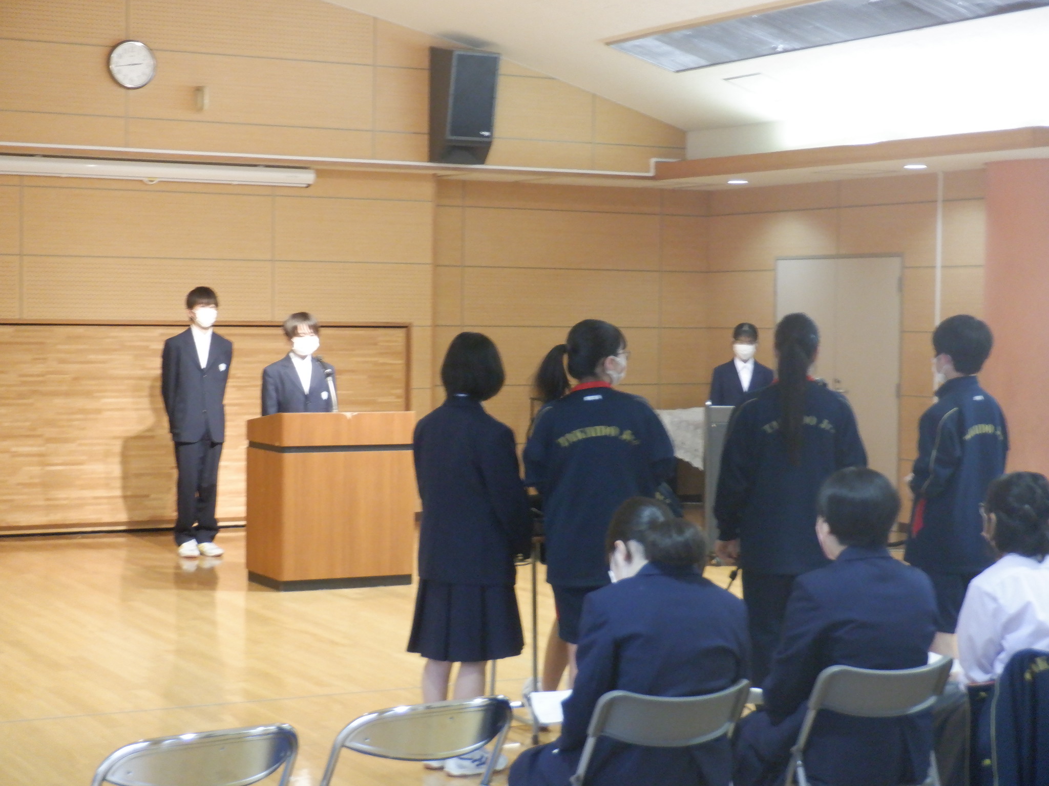 最後に三年生から後輩へのメッセージと合唱を披露しました。たいへん有意義な時間でした。生徒会の皆さんありがとうございました。