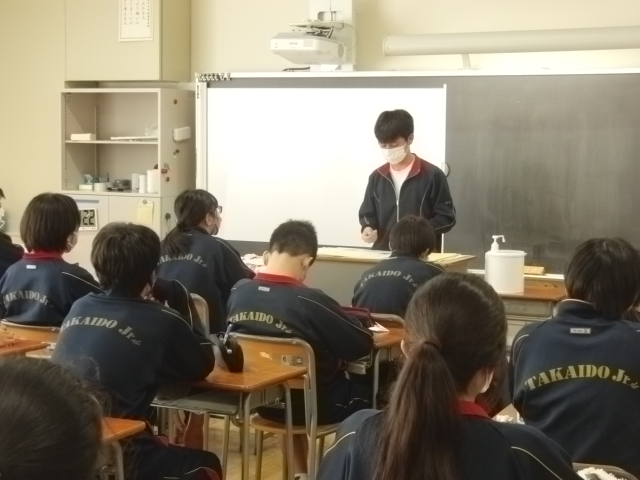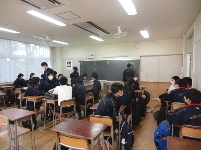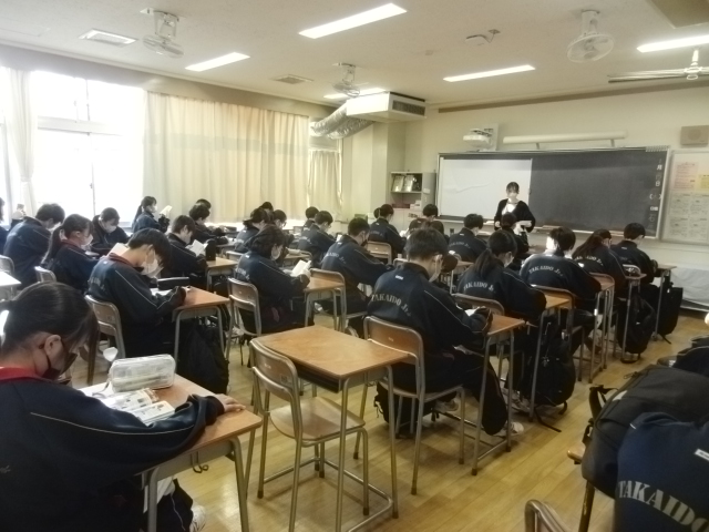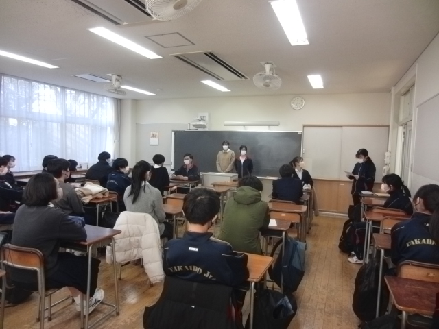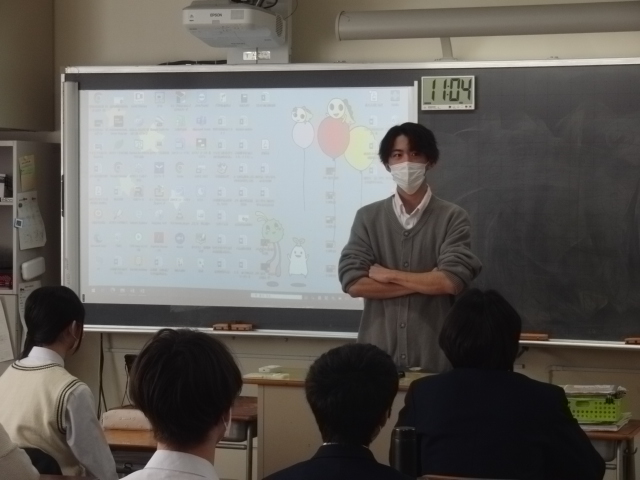 今年最後の土曜授業でした。2年生は本校を卒業した大学生に中学校・高校生活のことや高校・大学受験のこと、スマートフォンとの付き合い方などを聞きました。
