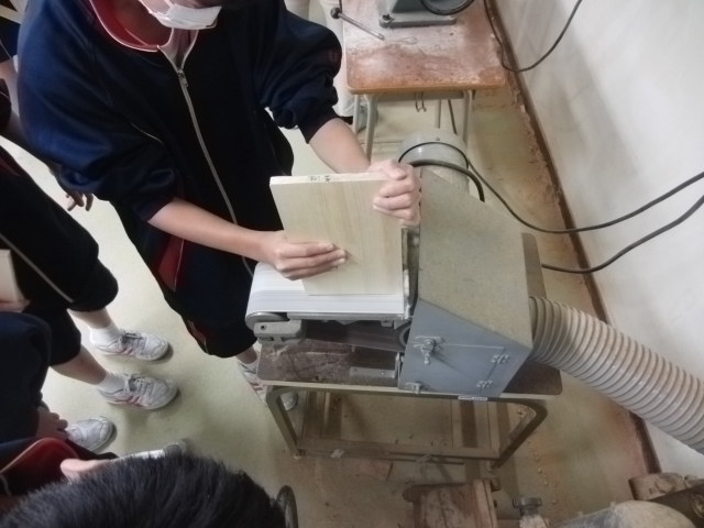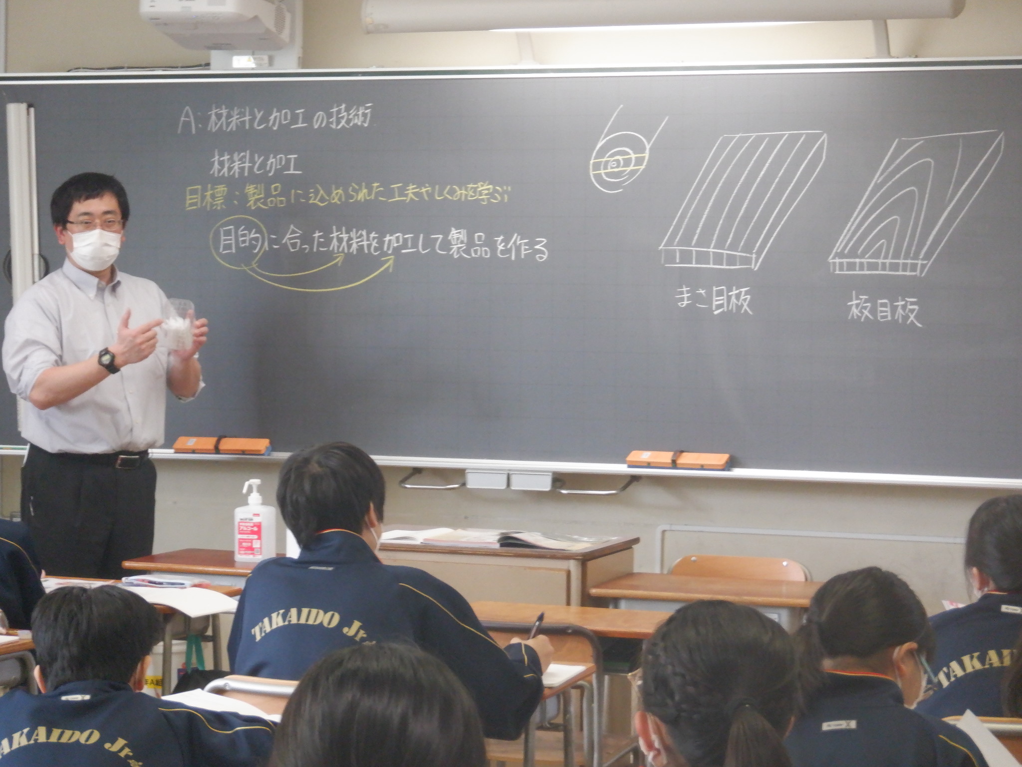 1年生は中学から始まる技術の授業がありました。授業では木材の種類や加工について学習します。今日の授業ではまさ目板と板目板の違いなどを学習しました。