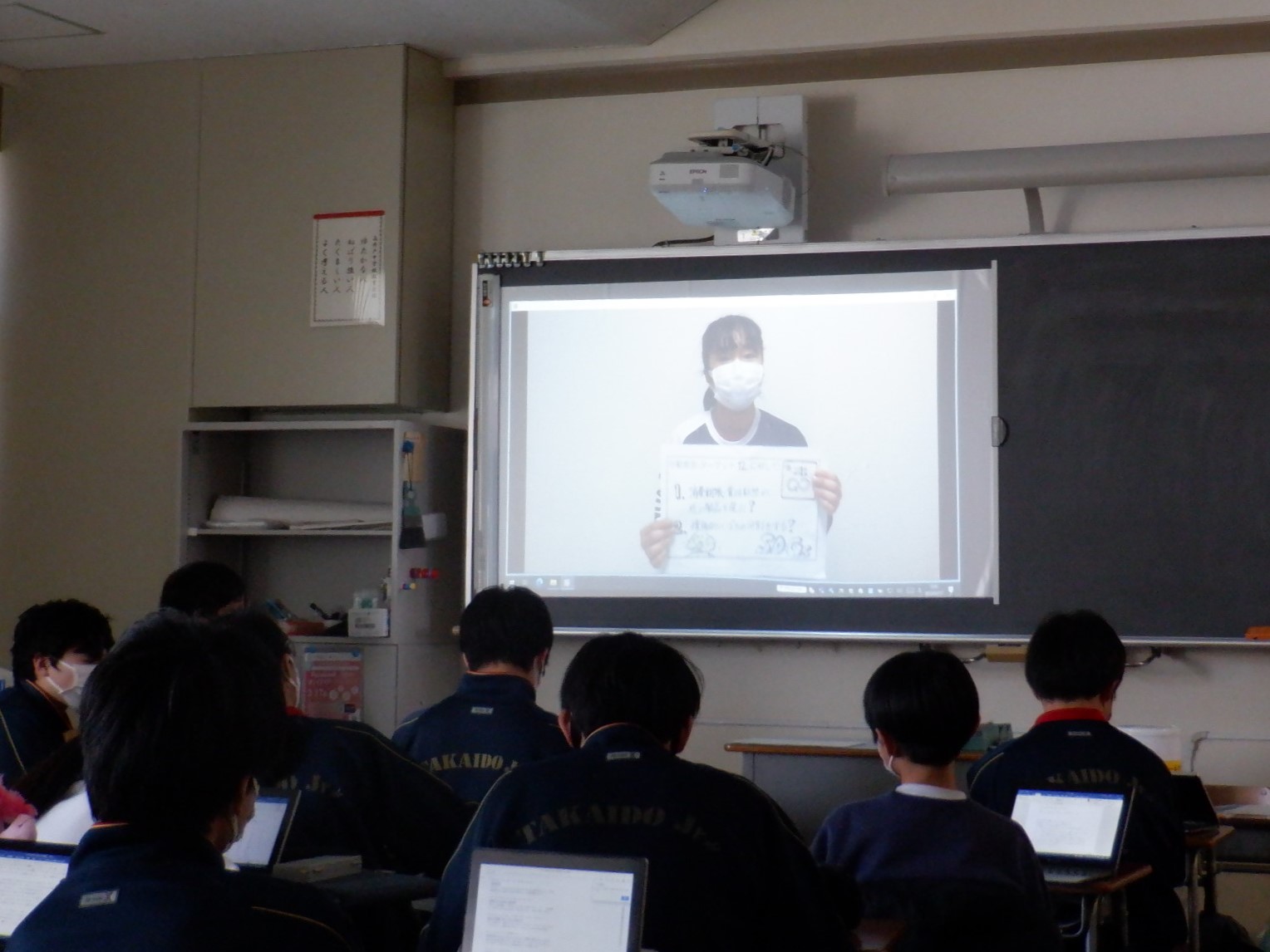 4時間目に生徒会を中心に三年生を送る会を行いました。1・2年生から卒業生に対して各クラスからビデオメッセージがありました。クイズがあったり、高中あるあるなどがあり、クラスで工夫したビデオでした。3年間の思い出のスライドも上映しました。