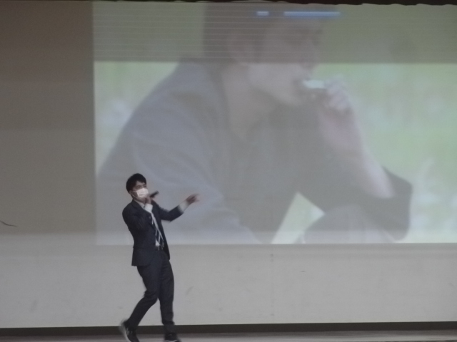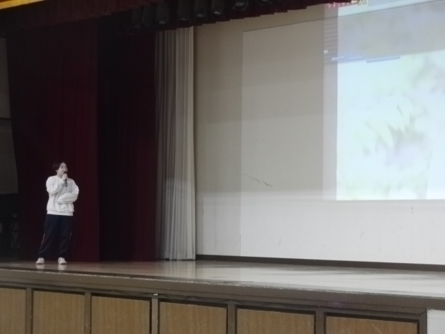 また、3年生の有志が校歌の紹介を行い、先輩の歌に驚いたと思います。明日から先輩たちの姿を見て、早く高中に慣れてください。