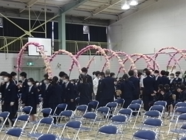 明日は卒業式です。1・2年生の係の生徒が体育館や玄関・校庭などの卒業式の準備をしてくれました。ありがとうございます。明日の卒業式は素晴らしい卒業式になると思います。