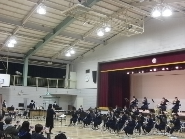 吹奏楽部は本校体育館でさくら舞う春の高中コンサートを行いました。