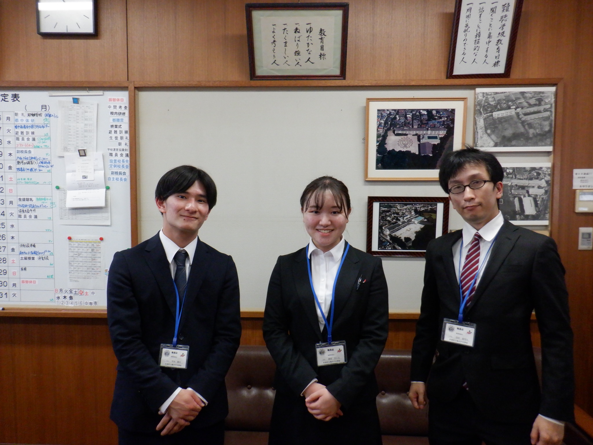 今週から3名の教育実習生が来ています。教科は社会・音楽・保健体育です。1年B組・2年A組・3年D組に入っています。3週間がんばってほしいと思います。