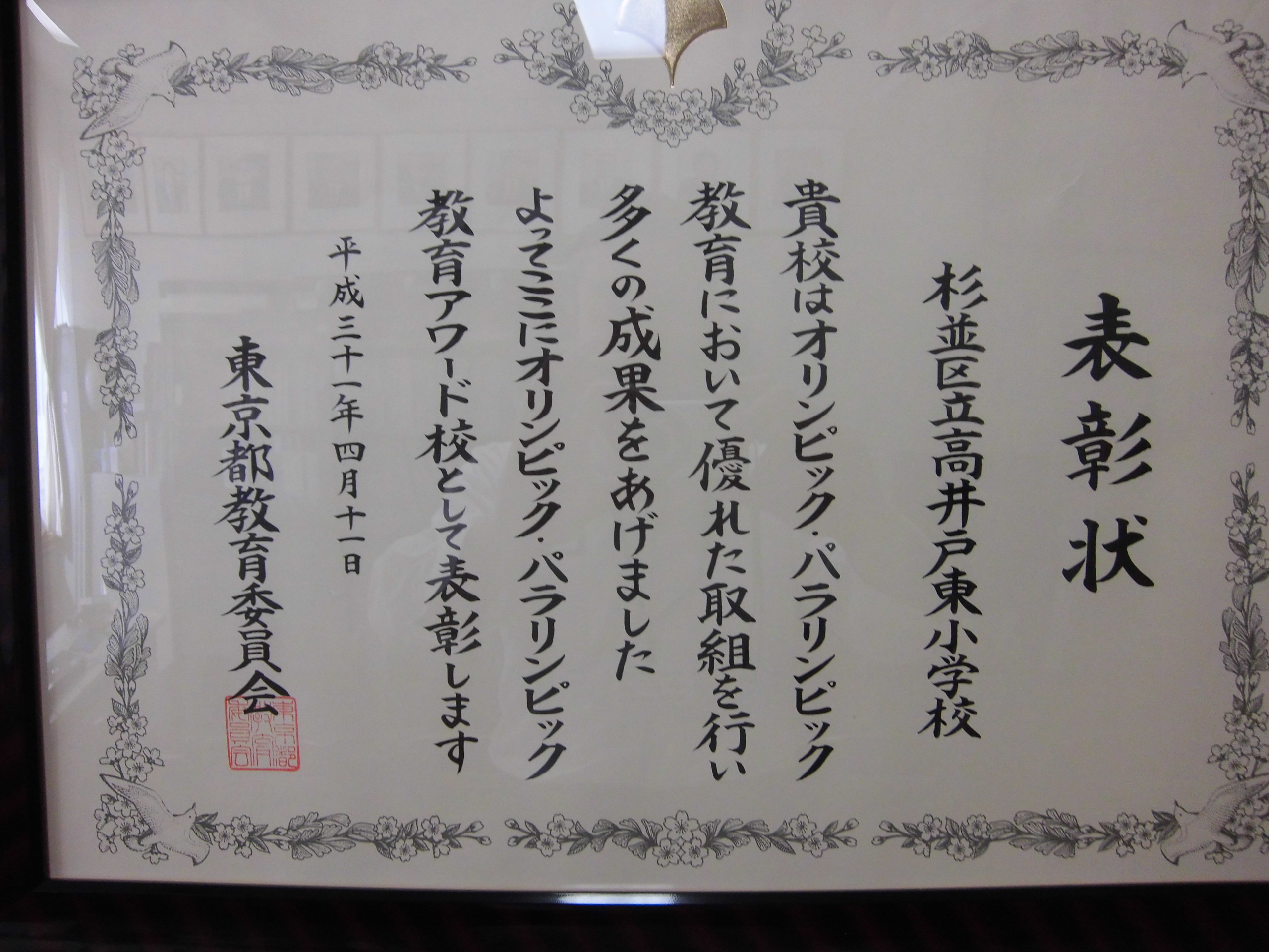 オリンピック・パラリンピック教育アワード校として表彰されました。