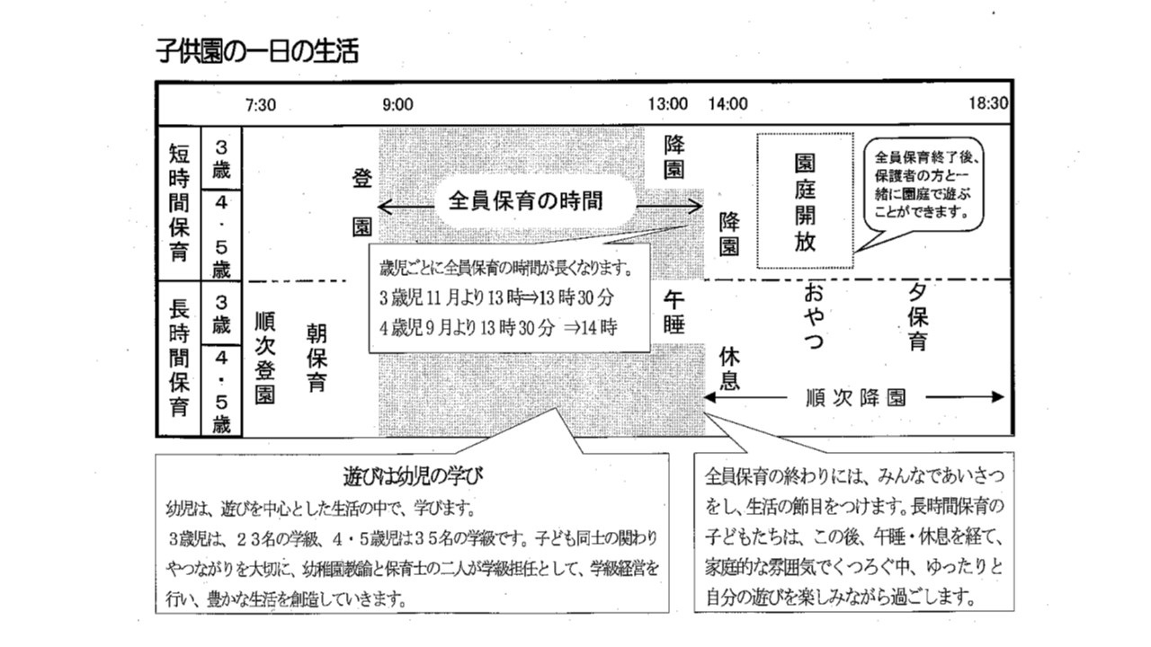* 研究会、職員会議等のため、月2回程度午前保育(午前11時45分降園)の日があります