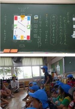 年長組の子どもたちも、学校の先生や2年生の話をよく聞き、グループごとに順番にコーナーを回りながら、交流を楽しんでいました。