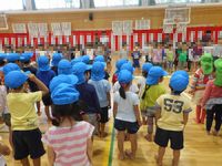グループに分かれて、2年生と一緒に体育館で交流しました。