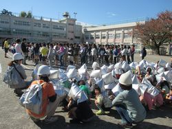 大震災や園舎の火災を想定した二次避難訓練を行いました。二次避難先の久我山小学校では、小学生の避難訓練の見学もしました。