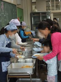 久我山小学校で、年長組が給食の体験をしました。5年生に教えてもらいながら、自分たちで配膳する流れも経験しました。メニューはカレーとサラダ、牛乳でした。手作りの給食に「おいしい!」と大喜びの子どもたち。おかわりもさせてもらうなど、楽しい経験となりました。