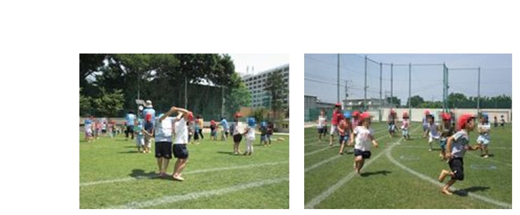 高井戸小の校庭はきれいな緑の芝生の校庭です。裸足になって、思い切り体を動かして遊びました。