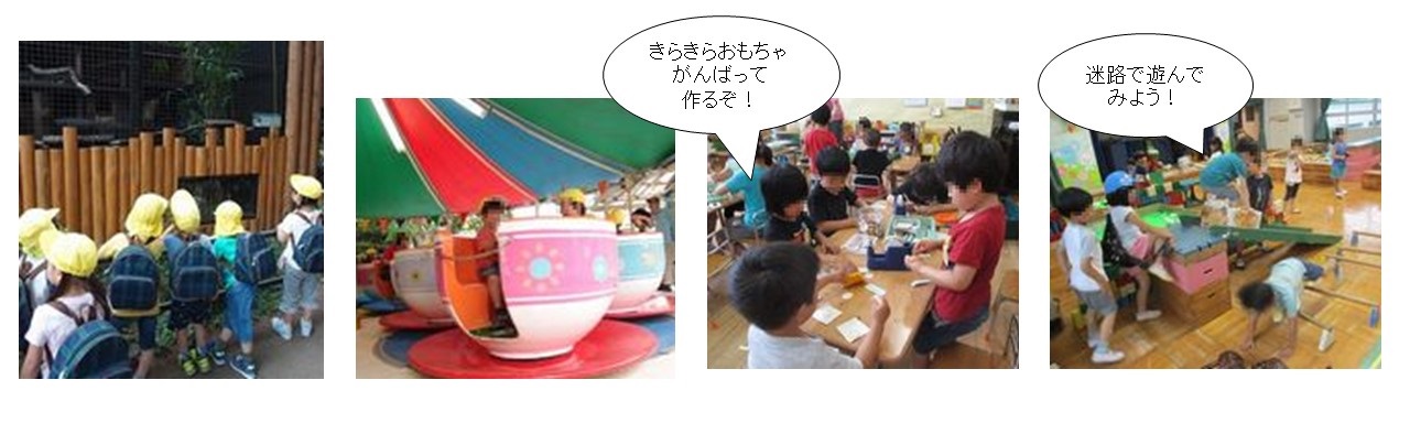 ぞう組では、5月末に井の頭公園へ遠足に行きました。その体験を生かして「たかにしランド」を作りました。友達と相談したり、それぞれのお店に必要なものを考えて作ったりしました。同じお店の友達と力を合わせて頑張りました。お店ができてくると、自分たちでも遊びながら、楽しい「たかにしランド」作りをしていました。