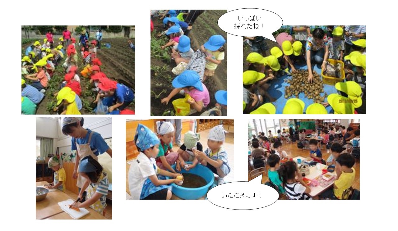 近隣の内藤さんの畑でジャガイモ掘りをしました。ぞう組は、自分たちの畑でもたくさんのジャガイモを収穫できて大喜び!「カレーパーティーをしてみんなにご馳走しよう!」と、張り切ってカレーを作りました。美味しいカレーができました。カレーパーティー大成功〜!!