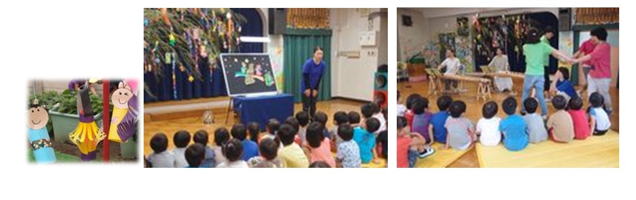 卒園児の保護者がお琴の演奏を聴かせてくださいました。お琴に合わせて七夕を歌いました。年長児は、一緒にわらべうたを楽しみました。