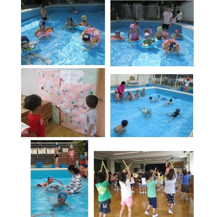 ひさびさの子供園のプールは、夏の間に水に親しんだのか、ワニ歩きで足と体の力を抜いて浮くことができる人が増えていて成長を感じました。潜ることに挑戦する姿も見られるようになってきています。和太鼓に合わせてうさぎ組・ぞう組は、八木節を踊りました。本物の太鼓に合わせての踊りは、いつもにも増して気持ちよく踊れました。
