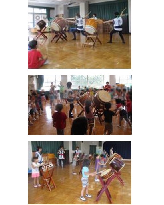 ぞう組は、太鼓体験をさせてもらい、そのあとは、スズやタンバリンを持って一緒に合奏しました。心が動く、貴重な体験になりました。