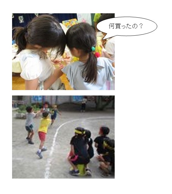 バザー体験に行きました。すぐに品物を見て買うものを決める子、じっくり最後まで悩んで買うものを決める子など、様々な姿が見られました。買い物の後は、友達と自分の買った品物を嬉しそうに見せ合っていました。