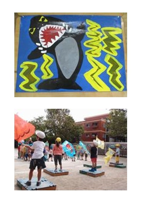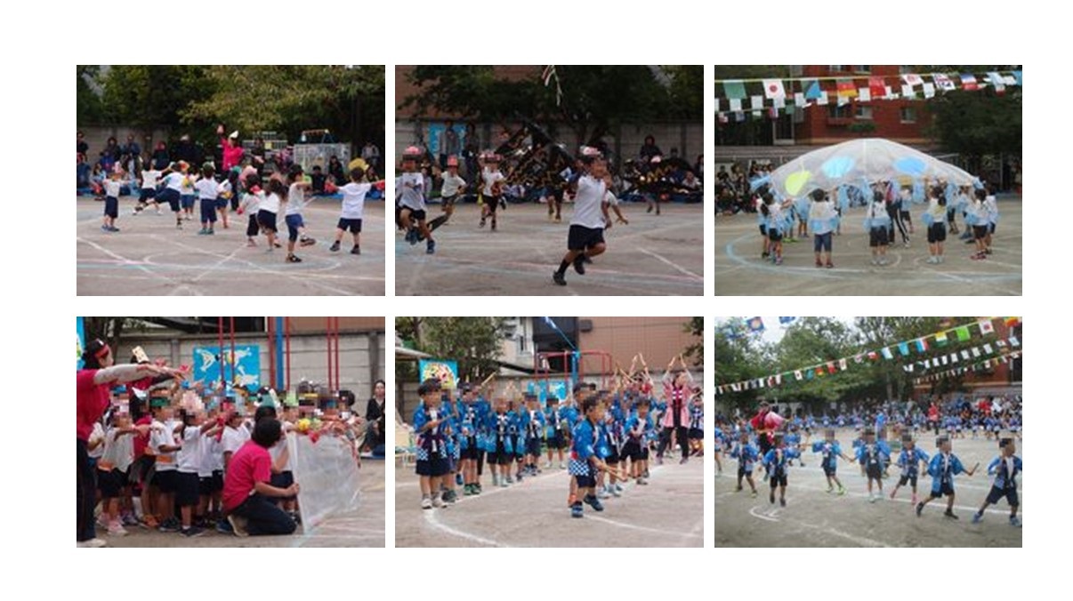 台風の影響で延期になり、平日の開催になりましたが、無事に終えることができました。今年のテーマは“海のオリンピック”です。たくさんの方の見ている中で、緊張しながらも、いつも通りにのびのびと表現し、楽しんでいました。