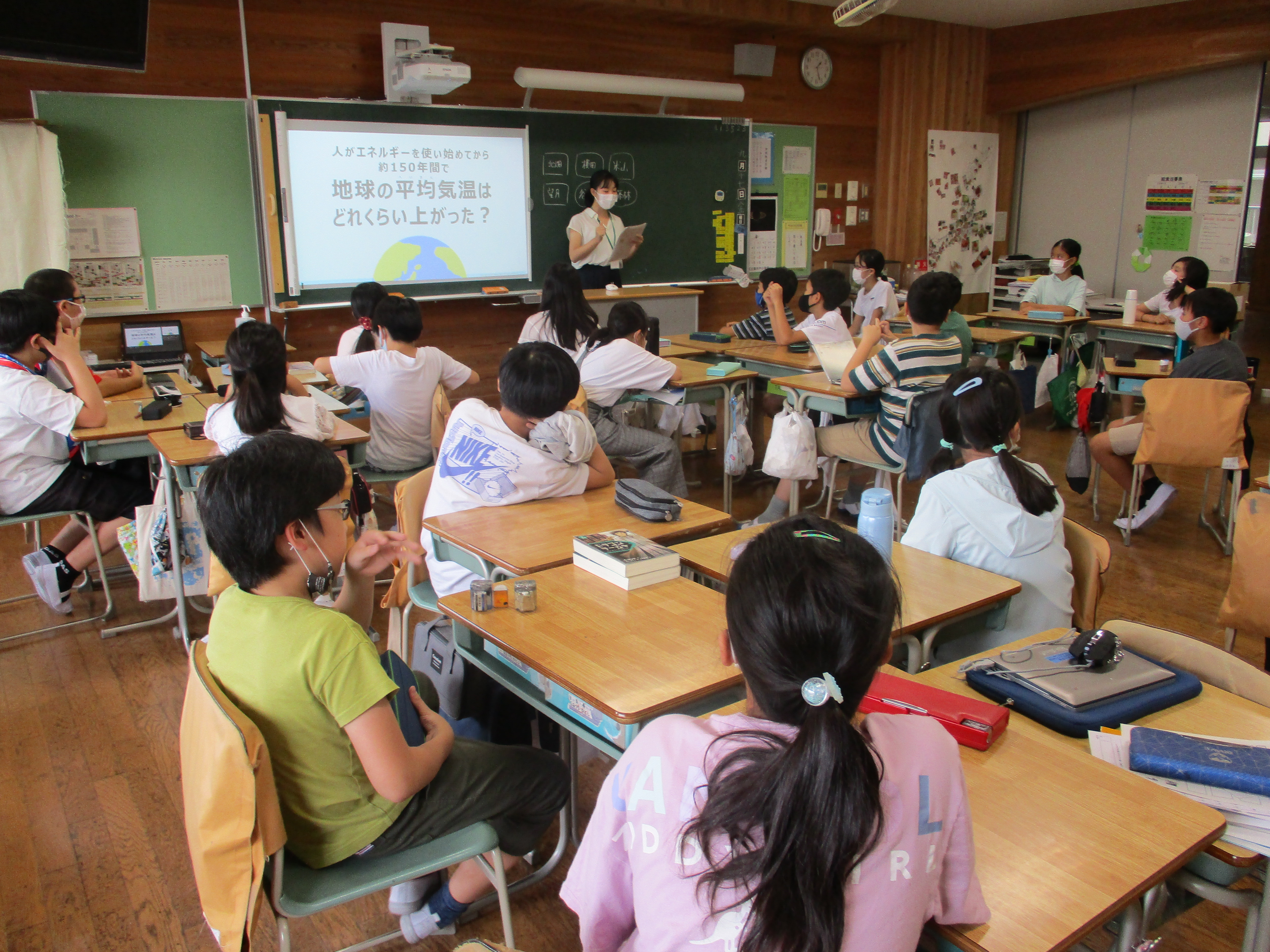 考える1つのきっかけに、外部講師を呼んでの出前授業を体験しました。私たちが生活する上で必要となるエネルギー。そのエネルギーを極力